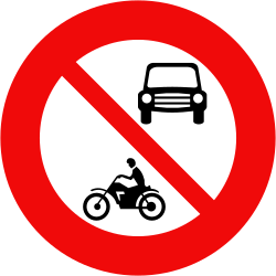 P101Đường cấmCấm tất cả các phương tiện đi lại cả hai hướng. Không áp dụng cho người đi bộ.