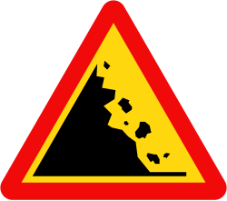 W228Đá lởCảnh báo phía trước có nguy cơ đá lở trên đường.